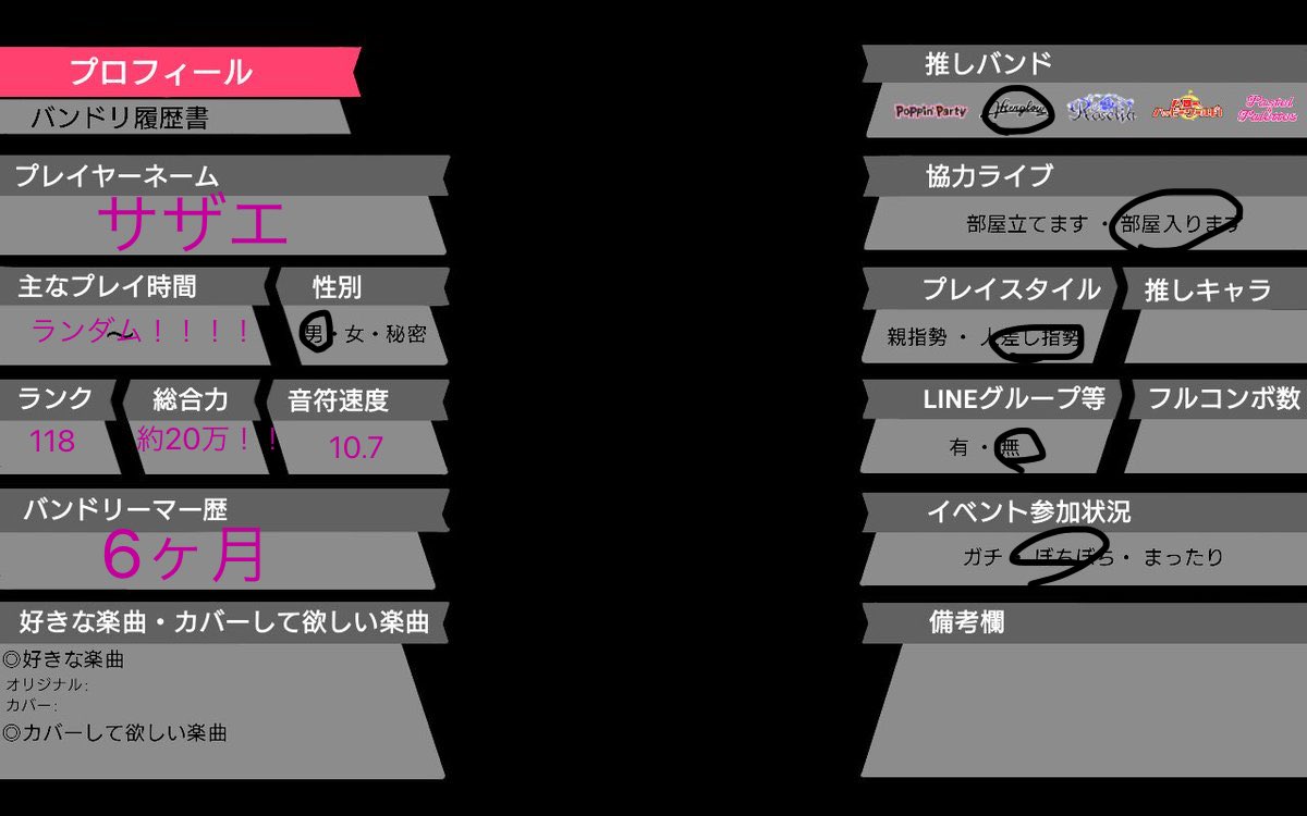 ガルパ履歴書の存在を知ったので試しに作ってみた よろしくお願いします バンドリ ガルパ バンドリーマーさんと繋がりたい バンドリ履歴書 ガルパ履歴書 バンドリ好きと繋がりたい ツイレポ