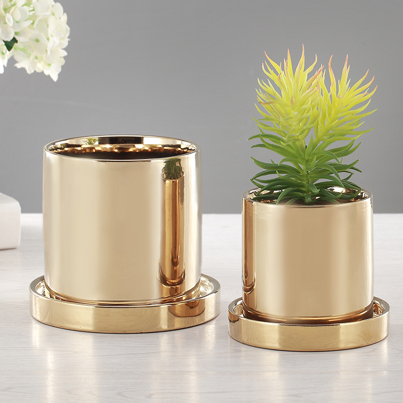电镀金属花瓶镀金花盆ins金色花盆盆栽笔筒花瓶花插花器可养真花 虎窝淘